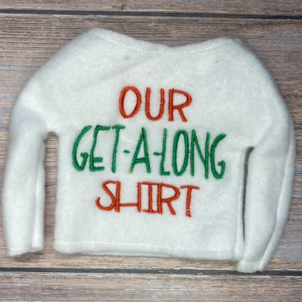 Elf sweater is made to fit the 10″-11″ tall elves with thin arms and legs.  Sweater is made of fleece so it stretches easily to fit your elf.