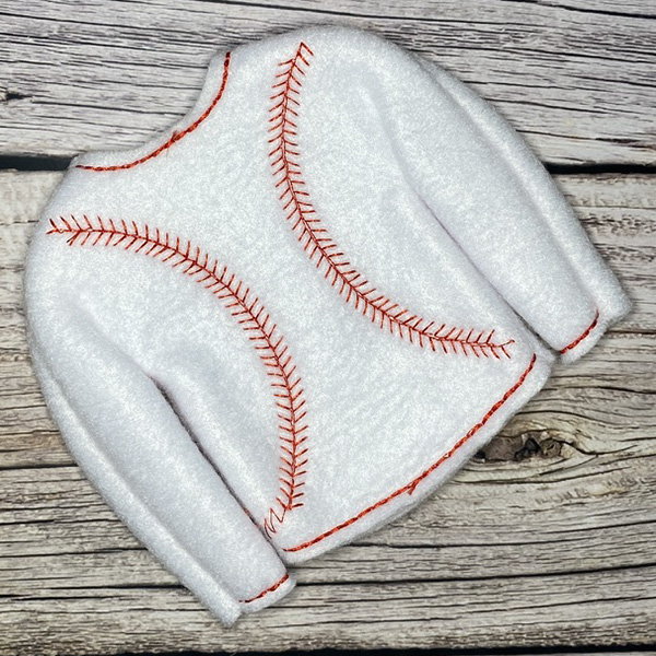 Elf sweater is made to fit the 10″-11″ tall elves with thin arms and legs.  Sweater is made of fleece so it stretches easily to fit your elf.