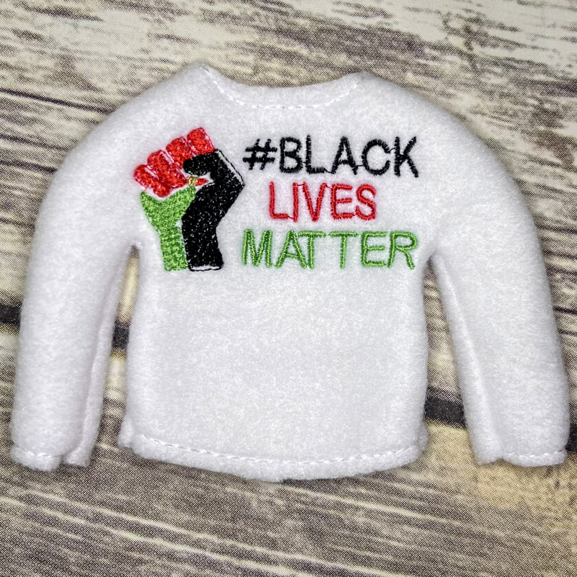 Elf sweater is made to fit the 10″-11″ tall elves with thin arms and legs.  Sweater is made of fleece so it stretches easily to fit your elf.