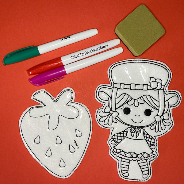 Choose your favorite theme or character. These color kits are made of felt with a clear marine vinyl on top. The kit comes with 3 dry erase markers and a dry marker eraser in a clear zippered bag. Color, erase and do it all over again. Great for a travel, restaurants, quiet time or on the go fun.   For hard to erase marks just use a wet wipe and it will be ready to color again.