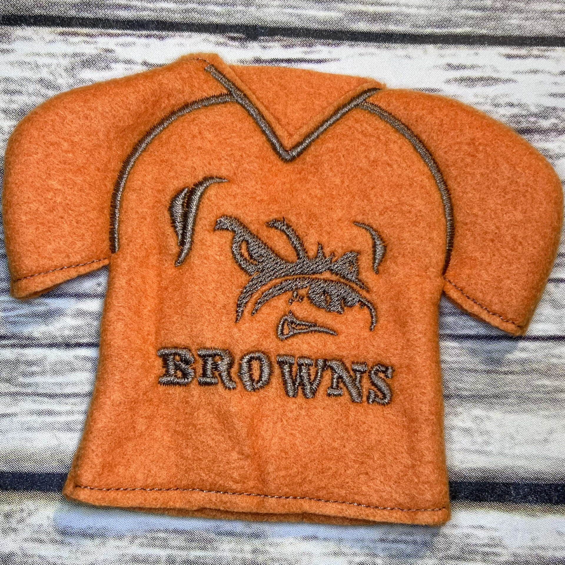 Elf sweater is made to fit the 10″-11″ tall elves with thin arms and legs.  Sweater is made of fleece so it stretches easily to fit your elf.