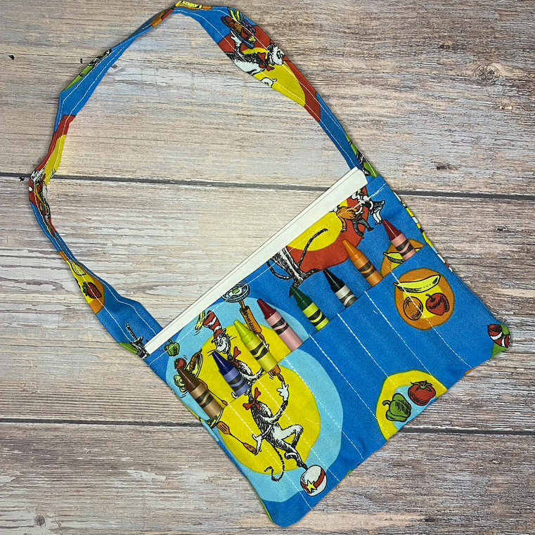 A fun activity for the kids to take on the go.  Perfect for restaurants, church or even a medical appointment.  Crayon bags are made from 100% cotton fabric: placement of characters may vary depending on how the fabric is cut. Included are a 4″x6″ pad of white paper and 8 Crayola crayons.