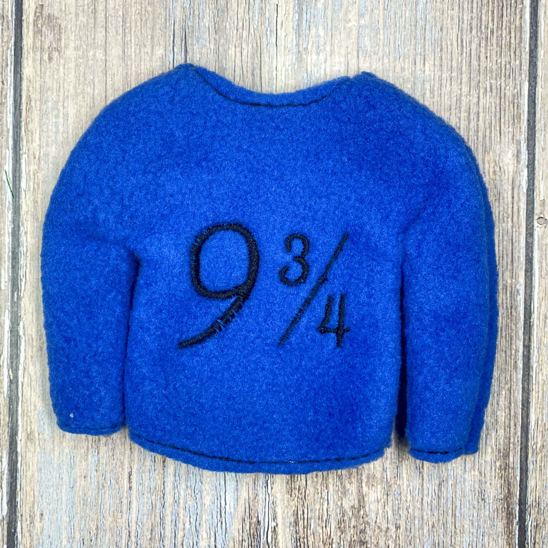 Elf sweater is made to fit the 10″-11″ tall elves with thin arms and legs.  Sweater is made of fleece so it stretches easily to fit your elf.