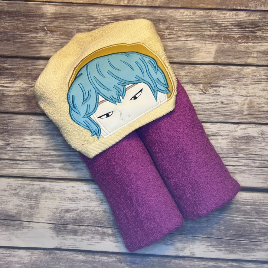 Made from full size towels (approximately 54″ x 30″) with color coordinated hoods. The embroidery is mainly marine vinyl or some fleece. They make great birthday or holiday gifts.