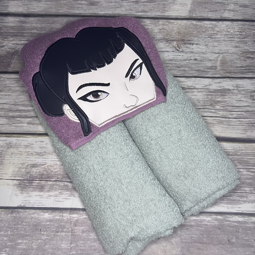 Made from full size towels (approximately 54″ x 30″) with color coordinated hoods. The embroidery is mainly marine vinyl or some fleece. They make great birthday or holiday gifts.
