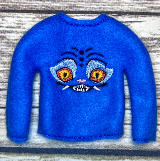 Elf sweater is made to fit the 10″-11″ tall elves with thin arms and legs.  Sweater is made of fleece so it stretches easily to fit your elf.