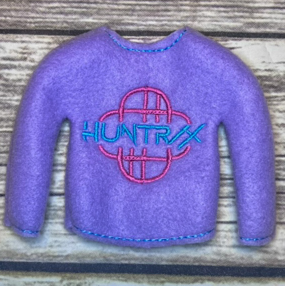 Elf sweater is made to fit the 10″-11″ tall elves with thin arms and legs.  Sweater is made of fleece so it stretches easily to fit your elf.