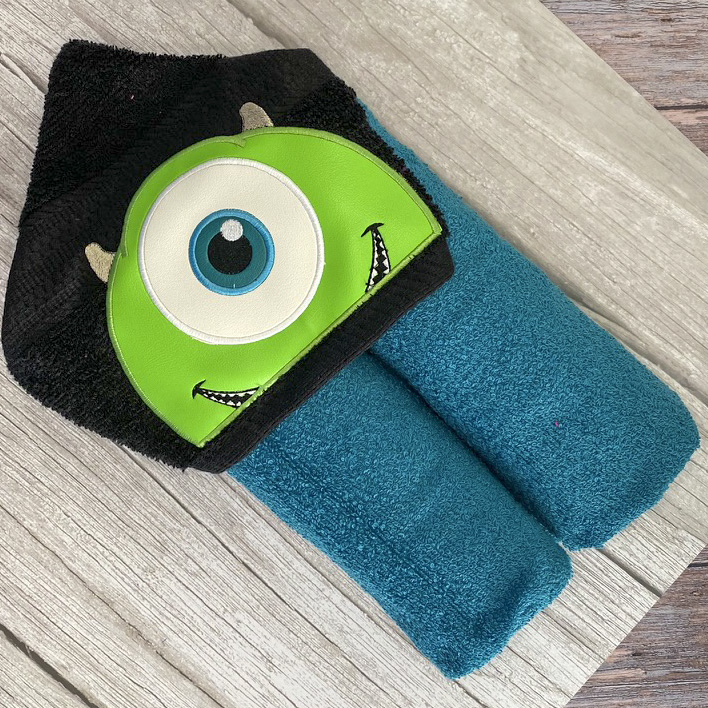 Made from full size towels (approximately 54″ x 30″) with color coordinated hoods. The embroidery is mainly marine vinyl or some fleece. They make great birthday or holiday gifts.