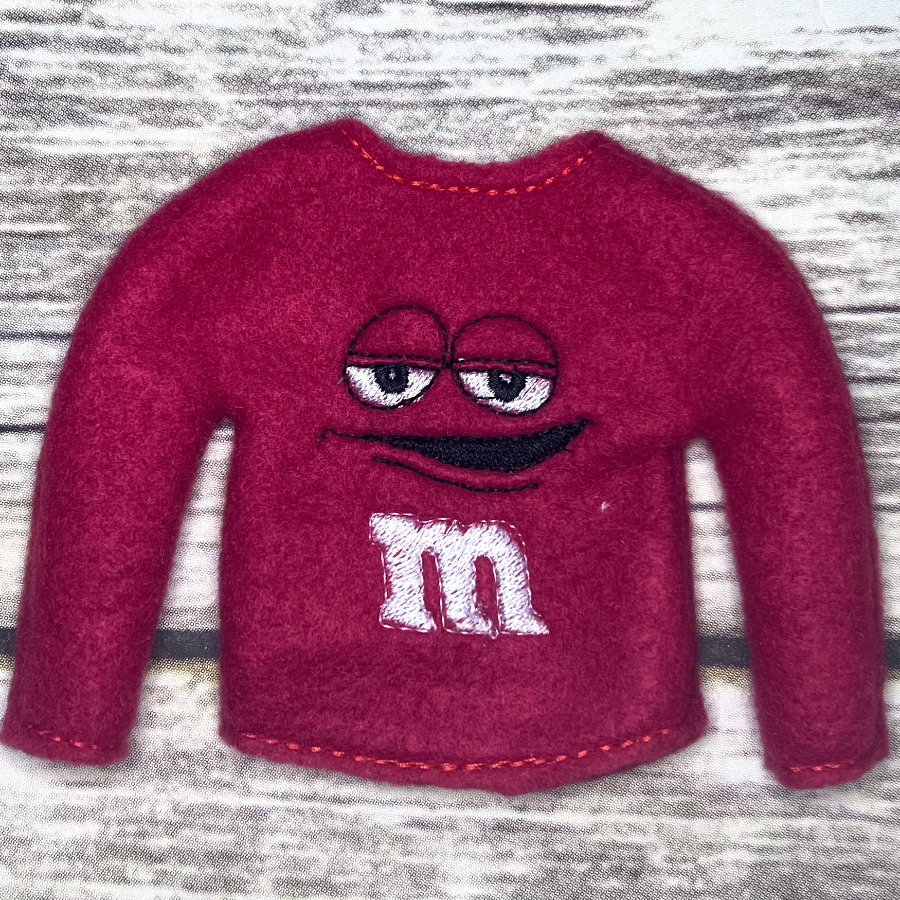 Elf sweater is made to fit the 10″-11″ tall elves with thin arms and legs.  Sweater is made of fleece so it stretches easily to fit your elf.