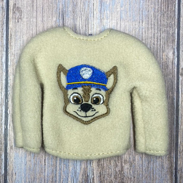 Elf sweater is made to fit the 10″-11″ tall elves with thin arms and legs.  Sweater is made of fleece so it stretches easily to fit your elf.