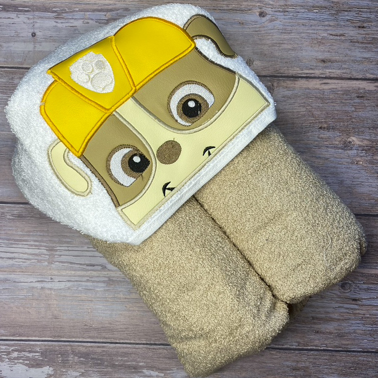 Made from full size towels (approximately 54″ x 30″) with color coordinated hoods. The embroidery is mainly marine vinyl or some fleece. They make great birthday or holiday gifts.