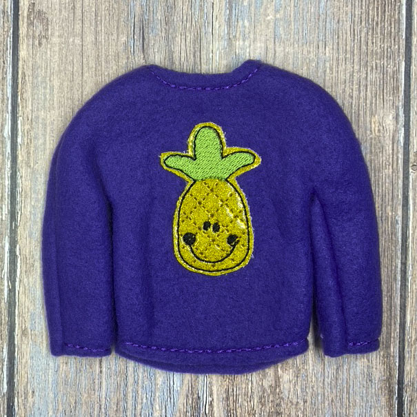 Elf sweater is made to fit the 10″-11″ tall elves with thin arms and legs.  Sweater is made of fleece so it stretches easily to fit your elf.