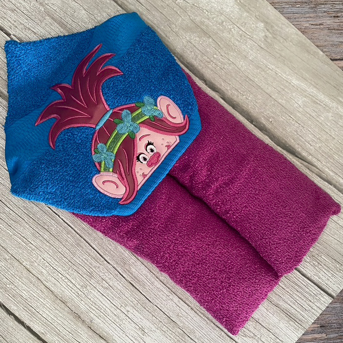 Made from full size towels (approximately 54″ x 30″) with color coordinated hoods. The embroidery is mainly marine vinyl or some fleece. They make great birthday or holiday gifts.