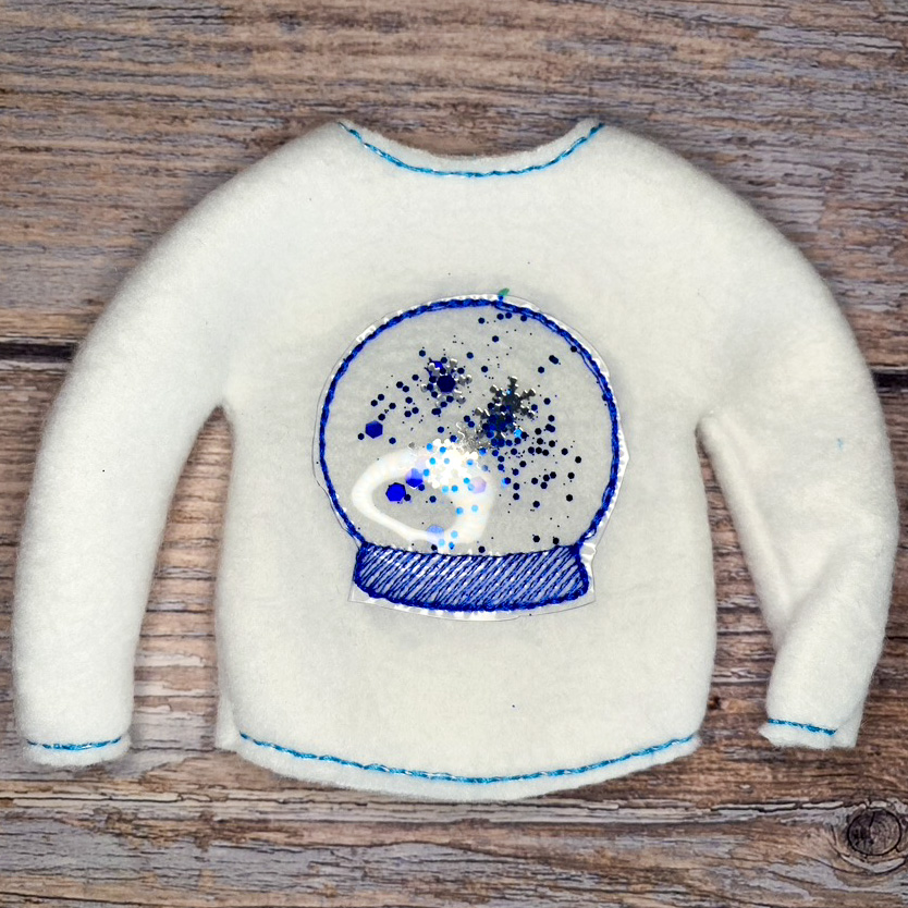 Elf sweater is made to fit the 10″-11″ tall elves with thin arms and legs.  Sweater is made of fleece so it stretches easily to fit your elf.