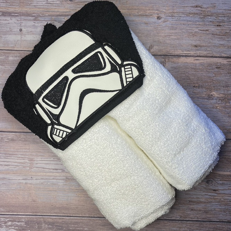 Made from full size towels (approximately 54″ x 30″) with color coordinated hoods. The embroidery is mainly marine vinyl or some fleece. They make great birthday or holiday gifts.