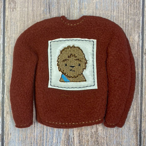 Elf sweater is made to fit the 10″-11″ tall elves with thin arms and legs.  Sweater is made of fleece so it stretches easily to fit your elf.