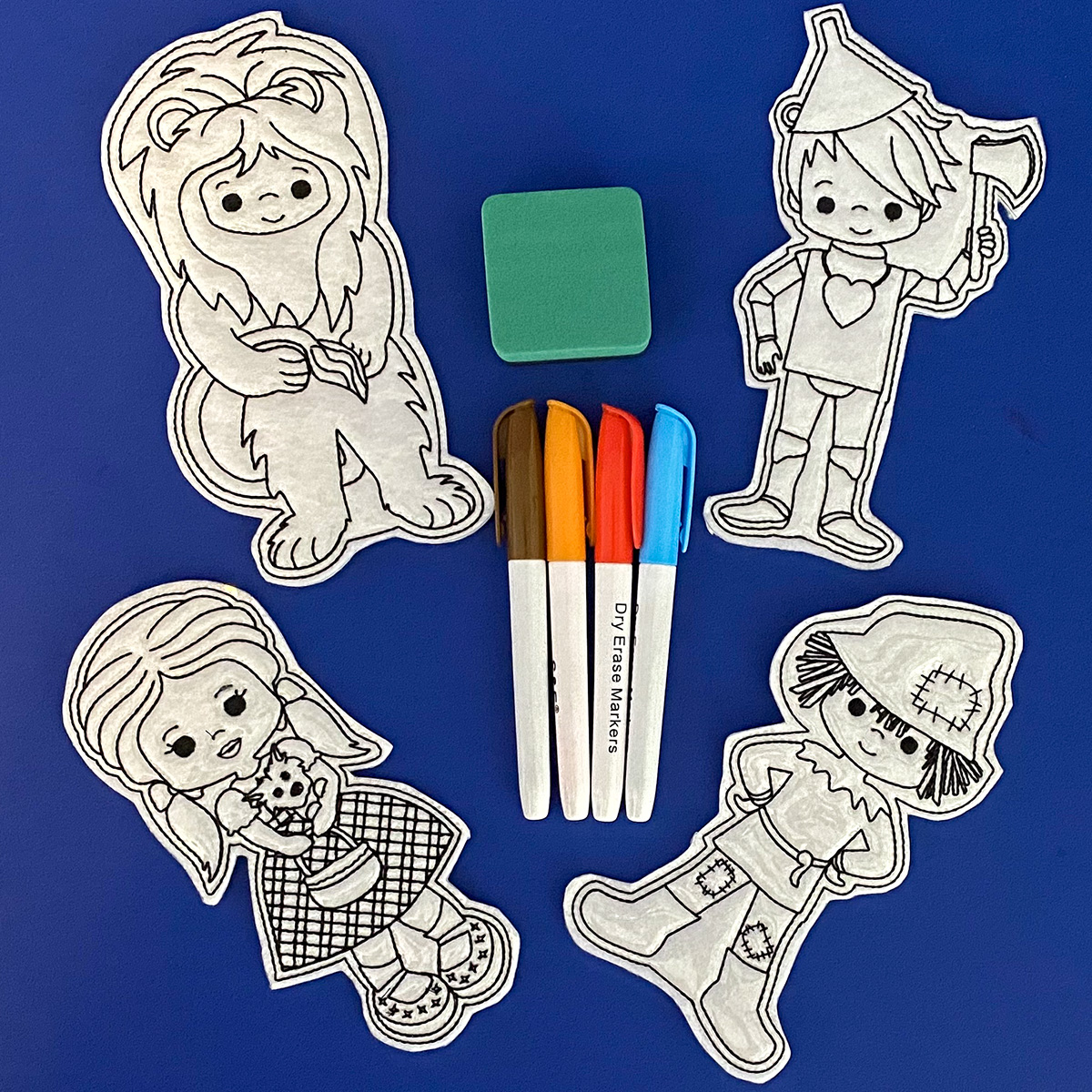 Choose your favorite theme or character. These color kits are made of felt with a clear marine vinyl on top. The kit comes with multiple dry erase markers and a dry marker eraser in a large clear zippered bag. Color, erase and do it all over again. Great for a travel, restaurants, quiet time or on the go fun. For hard to erase marks just use a wet wipe and it will be ready to color again.